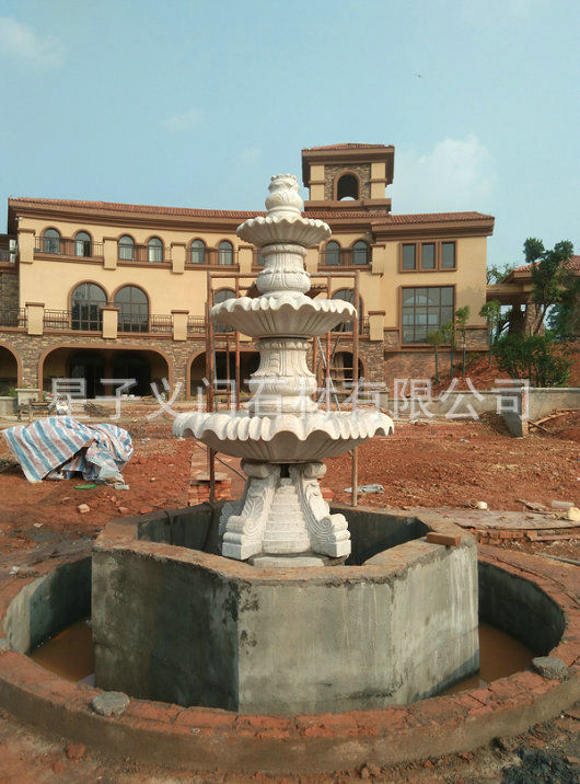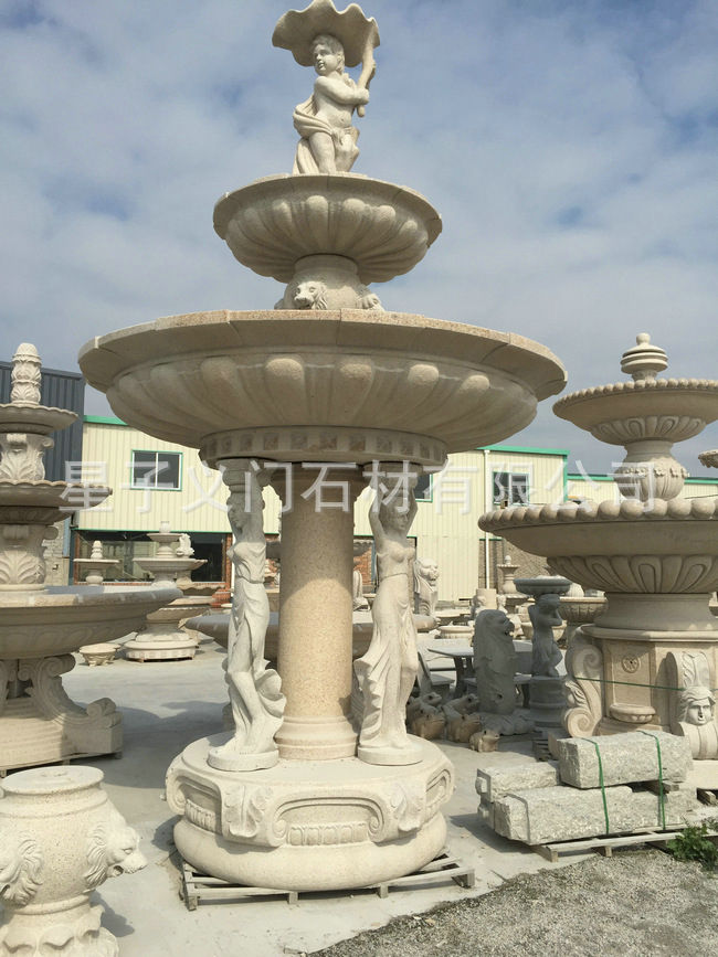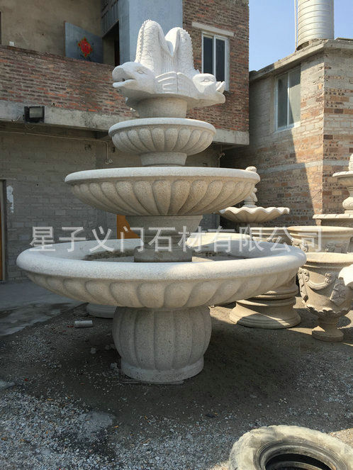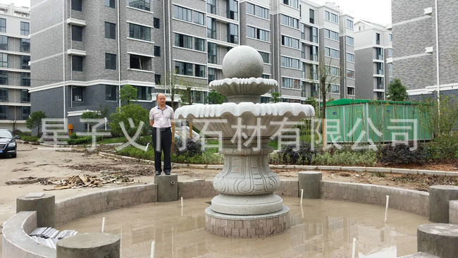 石刻花崗巖流水花盆定做 大型立體室外廣場花盆 石雕噴泉擺件