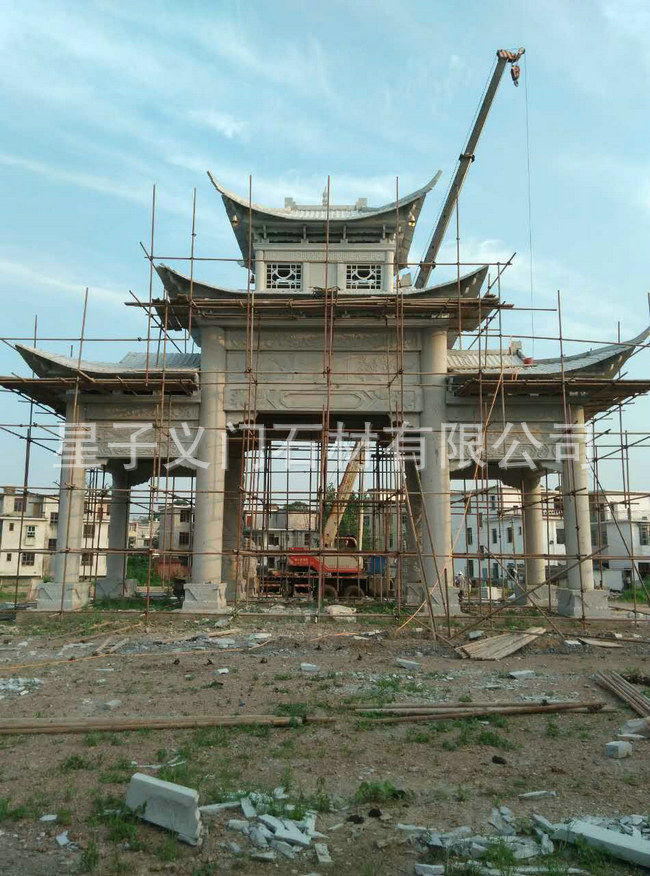 中檔牌坊 花崗巖三門石牌坊 石雕牌樓牌坊 加工定制各種花崗巖